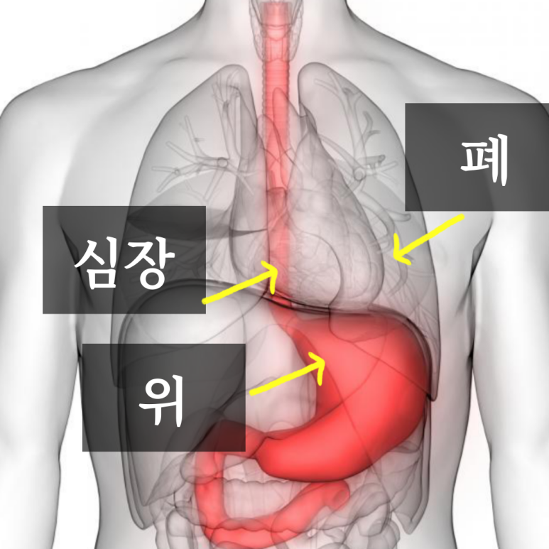 가슴통증으로 나타나지만, 여러 장기가 몰려 있다보니